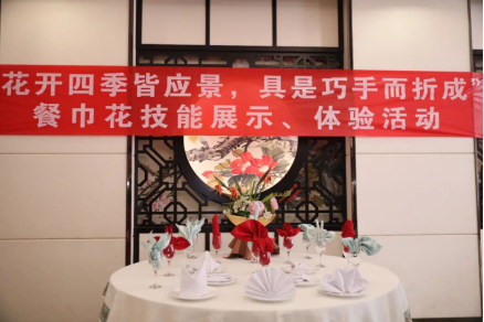 5月15日,邮轮旅游系组织开展“花开四季皆应景,具是巧手而折成”餐巾花技能展示体验活动。此次餐巾花技能展示体验活动由酒店管理教研室精心策划设计。