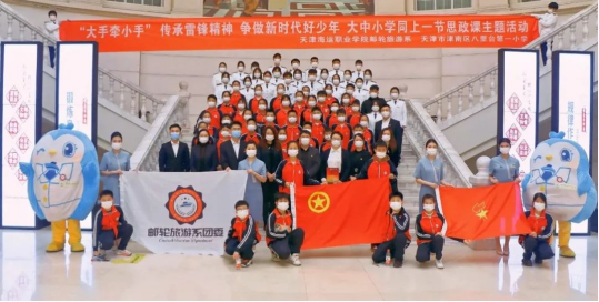 为深入贯彻落实党的二十大精神,发挥党建引领作用,加强大思政课堂建设,2023年3月9日,邮轮旅游系与市津南区八里台第一小学携手育人,开展了以“传承雷锋精神 做新时代好少年”为主题的同上一节思政课活动。