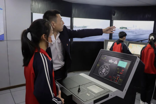 课程结束后,全体师生参观了学院航海技术系船舶航海模拟器、天象馆、图书馆、邮轮旅游系船模实训室。让同学们身临其境地体验“小小航海家”,筑起了蓝色“海洋梦”。