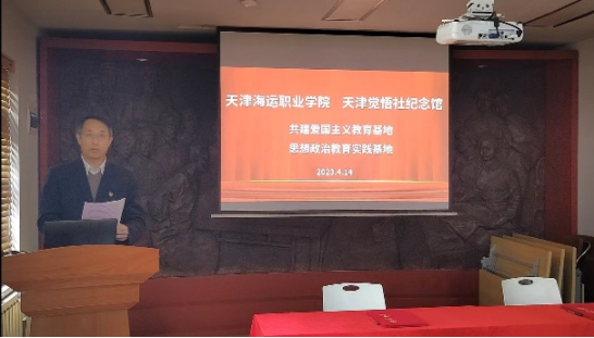为加强学生的爱国主义教育、推进我院思想政治理论课实践教学,4月14日上午,思政教学部与天津觉悟社纪念馆签订合作协议,建立爱国主义教育基地和思想政治教育实践基地。思政教学部支部书记高霞、主任王强,觉悟社纪念馆馆长马媛以及思政教学部教师参加了签约揭牌仪式。仪式由思政教学部教师李彬老师主持,王强主任与马媛馆长分别讲话。