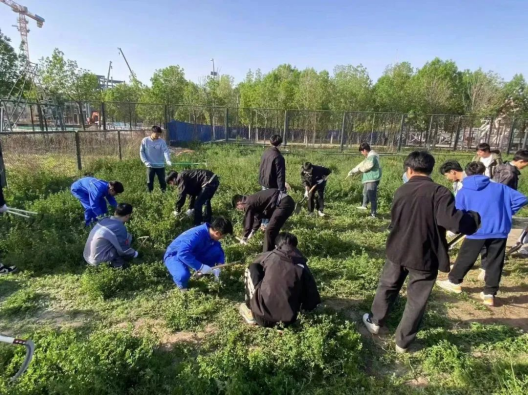 同学们有的第一次使用镰刀锄草,有的第一次戴上手套劳动,有的第一次来到素质教育拓展训练场……各教学系在指定区域内分工协作,同学们从最初的不知从何处干起到充分体会到人多力量大、再大的困难与任务通过团结互助的劳动付出都可以迎刃而解,欢声笑语让同学们忘却了劳动的辛苦。