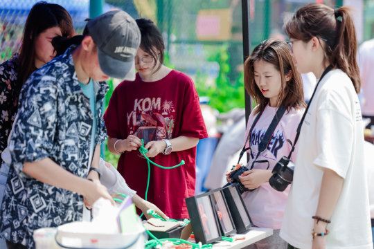 在高校特色心理体验项目嘉年华活动中,学院开展的“水手结”工坊特色体验活动,受到了大家的热烈欢迎。各校师生纷纷前来体验,活动现场格外热闹,人气爆棚。