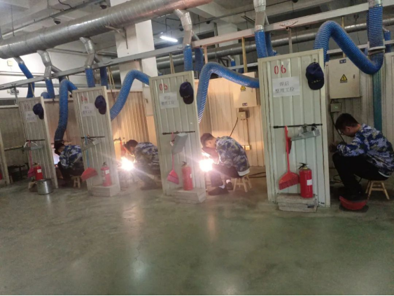 此次比赛分为预赛和决赛两大环节。预赛环节要求选手在40分钟内完成薄板(T=3mm)平焊位置的钨极氩弧焊焊接,决赛环节需要用焊条电弧焊完成厚板(T=12mm)平焊位置焊接,比赛用时120分钟。比赛重点考察焊接规范装配、焊接操作技能、焊接工艺参数选择、焊接材料选用等劳动技能,并将安全文明施工、“6S”管理等职业素养要素纳入考核范围,本次比赛特别邀请了轮机工程系焊接教研室主任王艳老师作为裁判。