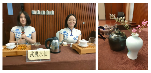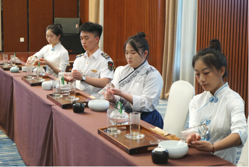 茶艺技能展示活动中,同学们进行了绿茶玻璃杯冲泡、红茶盖碗冲泡、乌龙茶小壶单杯冲泡茶艺表演,配以茶诗诵读以及西湖龙井、白毫银针、六堡茶、祁门红茶等相关知识介绍,充分展示了专业技能,带领到场的中船舰客企业专家以及师生们沉浸式体验中华优秀传统茶艺美学之雅。