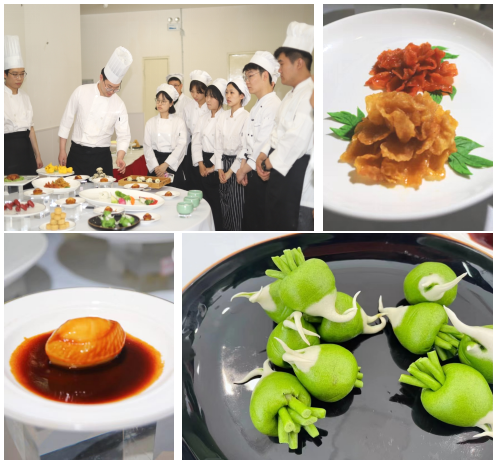 烹饪技能展示活动中,同学们进行了中餐热菜制作、中西面点制作、冷菜拼摆菜品展示、主题宴席菜点解说展示等。精心制作的作品充分弘扬中华传统饮食文化,结合职业技能竞赛进行开拓与创新,让更多师生亲身体会中华美食的品鉴乐趣、感受中华优秀餐饮文化的魅力。