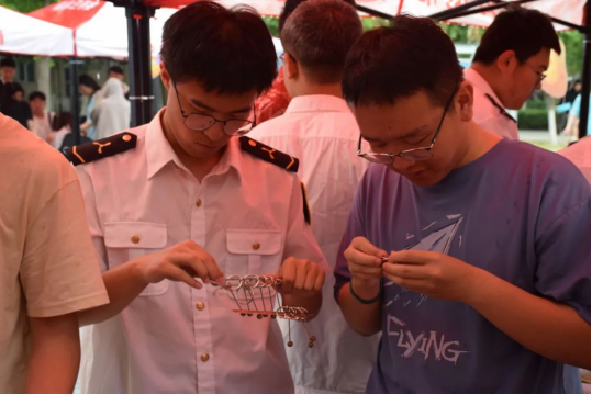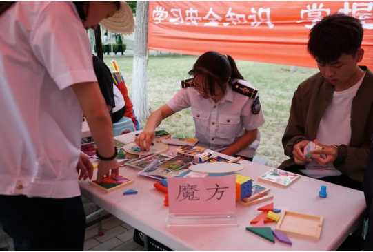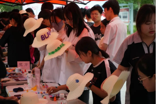 5·25,谐音“我爱我”,寓意学生要关注自己的心理成长与心理健康,学会关爱自我、了解自我、接纳自我,进而学会关爱别人,关爱社会。为提高同学们的参与程度,使同学们获得充分的体验感,本次活动在内容设置上提供了“心理体验区”“智力闯关区”“团体游戏区”三大展区,各个展区均有不同的主题活动供学生们选择和体验。活动现场热闹非凡,各项活动体验人数达4000余人次。“心理体验区”以参与动手制作体验为主,设置了“心有千千结”“DIY团扇绘制”“飞盘速递”“草帽彩绘”四项主题体验活动。学生们可以通过学习编制各种不同形式的水手结来体验中国悠久的绳结文化,也可以在扇面或者草帽上用色彩绘制属于自己的专属图案,制作独一无二的潮流单品,体验亲手制作带来的快乐。