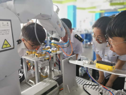 5月13日-14日,由轮机工程系于志民老师主讲的《工业机器人编程》在天津博诺智创机器人技术有限公司开课。“一定要让同学们快乐地学习,高效率地学习”。该课程改变了传统的教学模式,将课堂搬进企业,让学生通过企业参观、理论学习、动手实践相结合的方式身临其境地了解数字时代的发展,更好地学习和掌握机器人编程基本技能。