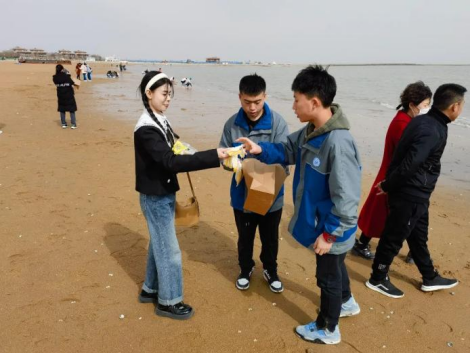 3月11日-12日,志愿者们参加了“蓝色希望”海洋研学活动,先后参观了天津临港海水淡化与综合利用示范基地、国家海洋博物馆,并前往东疆湾沙滩开展净滩行动。