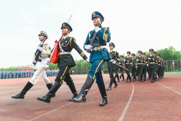 开营仪式上,王洋部长宣读军训团成立及任命决定。王军副院长向军训团授旗,承训教官向参训学生示范展示了军人队列动作。丁明航政委代表组训部队讲话,希望组训教官发扬我军优良传统和作风,以自身良好的素质形象感染和引领同学们,保质保量完成好军训任务;希望同学们严守纪律,服从指挥,努力锤炼意志品质和精神毅力,为今后的准军事化素质养成教育开启第一堂课,努力成为中华民族伟大复兴的栋梁之才。