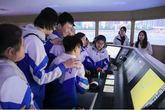 课程结束后,同学们参观了学院“走进平津战役”专题展览、天象馆、船舶模拟器实训室。天津市聋人学校、天津市实验小学津南学校同学们稚嫩的脸庞上洋溢着笑容,写满了对海洋、对未来的期盼,在内心深处种下了一颗蓝色种子,静待海洋之花绽放。