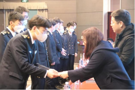 为表彰先进,树立典型,各公司依次在学院报告厅举行奖学金颁发仪式。颁奖仪式上,公司领导为2021级优秀学生颁发奖学金,在肯定学生成绩的同时鼓励大家要坚定自己的航海梦,在校期间扎实学好专业知识,为今后的适任证书考试做好充足的准备。会后,公司领导与2022级订单班同学座谈并慰问2020级考证复习学生。