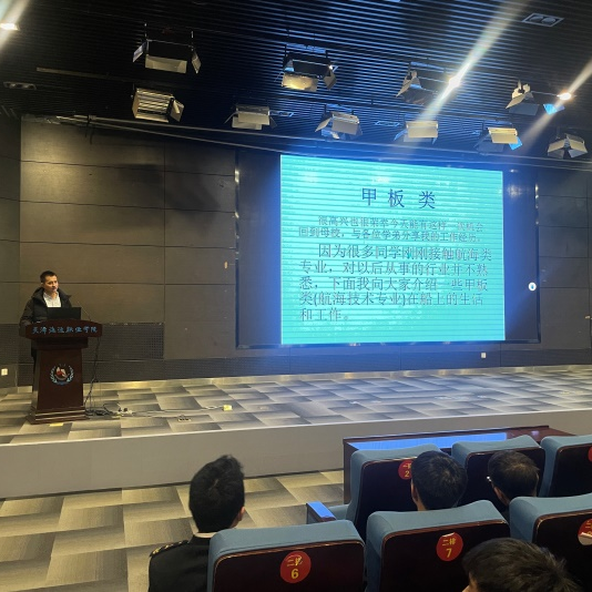 各公司选派航运领域知名专家为订单班学生开展职业生涯规划讲座,引导学生客观认清当前航运形势和就业形势,了解航海类专业就业面临的机遇,把握航运市场的走向,树立明确的职业目标。优秀毕业生阎嘉悦、胡锦涛、许志诚进行经验分享,他们以自己的考证经验及航海经历,鼓励同学们锤炼坚韧品格,练就过硬本领,积极参加航海类适任证书考试,早日成为高素质航海人才。