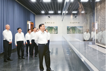 2023年7月29日,中共中央总书记、国家主席、中央军委主席习近平在四川考察结束返京途中,来到陕西省汉中市考察。这是习近平参观汉中市博物馆有关历史文物展陈。新华社记者 鞠鹏 摄