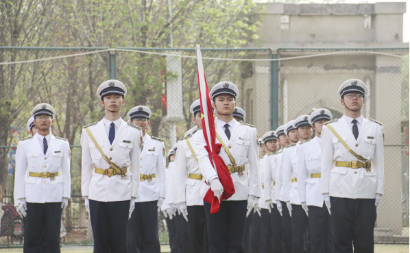 学生代表海洋装备系李思莹进行国旗下演讲,号召全体学生心系国家发展,投身国家安全,听党话,跟党走,立志成才,报效祖国。